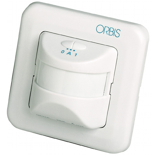 ORBIMAT Датчик движения устройство для включения и выключения освещения, угол сканирования 195°, область 0-8метров, задержка включения 5секунд-12минут, 10(2,5)А 250V AC, монтаж в универсальный бокс, IP20 |
