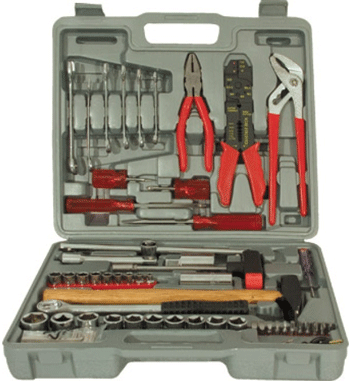 Универсальный. В наборе: На 1/4": 9 головок (5-13 мм), Т-образный вороток, переходник на биту. На 1/2": 10 головок (9-22 мм), вороток-рычаг, вороток (трещетка), удлинитель для воротка 127 мм, 2 головки на свечу зажигания 16 и 21 мм. 11 бит, клещи переставные, 4 отвертки, 6 ключей комбинированных 8-15 мм, пассатижи, электропассатижи, молоток с деревянной ручкой, пробник автомобильный, 39 клемм, щуп измерительный, 7 ключей "HEX" 1,5-6 мм. Упаковка: пластиковый чемодан. |